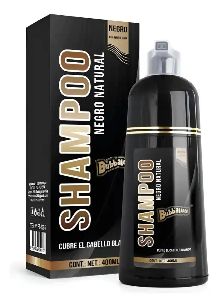 Bubbaluu Shampoo Negro Natural – Shampoo formulado para limpiar el cabello mientras ayuda a cubrir progresivamente las canas, aportando un tono negro natural uniforme. Su uso regular contribuye a mantener el color, mejorar la apariencia del cabello y dejarlo suave y manejable. Ideal para quienes desean disimular el cabello blanco de forma práctica durante el lavado. Contenido: 400 ml. Uso externo.