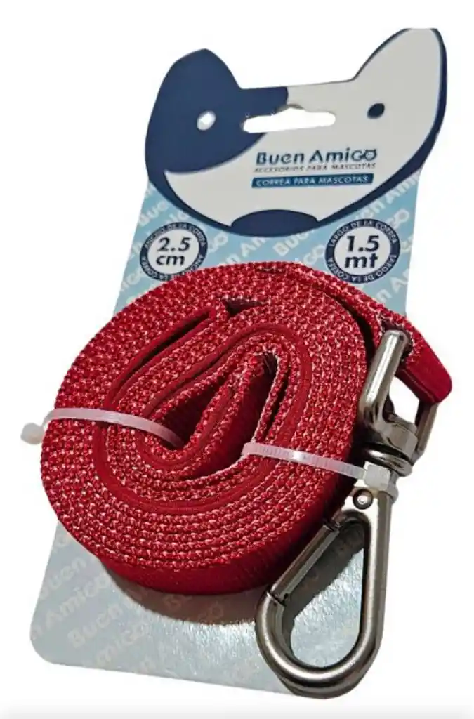 Correa para perros /Largo: 1.5 metros-Ancho: 2,5cm/ Para perros de hasta 50 kilos. - Mango acolchado para amortiguar tirones. - Mosquetón giratorio 360° para evitar enredos * Medidas: Largo: 1.5 m. * Material: Nylon. * Resistente y con muy buenas terminaciones. * Gancho de metal Fuerte. * Gancho giratorio para evitar enredos. * El bordado hace que el mango no sea incómodo a tu mano. * Fácil de lavar (a mano). * Para perros pequeños, medianos y grandes (de hasta 50 kilos). VARIEDAD DE COLORES, SE ENVIARA DISPONIBLE AL MOMENTO.