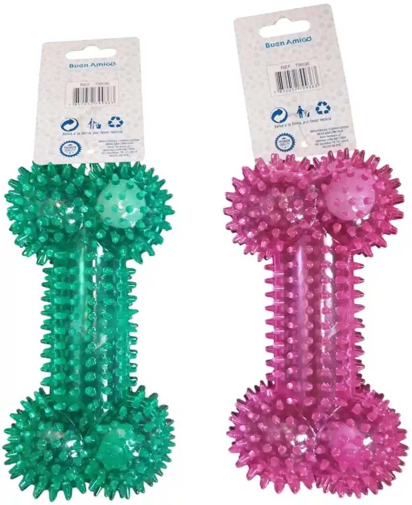 BUEN AMIGO - JUGUETE HUESO MORDEDOR CON PUAS Y SONIDO PARA PERROS (79936)