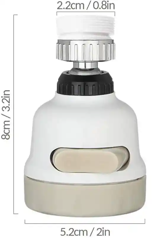 - 3 modos de ajuste de agua de salida. (modo de pulso, modo agregado y modo de rociador).--Los usuarios pueden regular la cantidad de salida de agua, así como la presión del agua simplemente presionando el botón de regulación de agua en el cabezal móvil del grifo de la cocina de acuerdo con las necesidades reales del agua. -Grifo de cocina giratorio de 360 grados. -Fácil instalación, sin necesidad de otras herramientas, accesorios o expertos. Puede instalar el cabezal de grifo de cocina flexible usted mismo. Comodidad y ahorro de tiempo Ampliamente utilizado en más del 99% de los tipos de grifos de cocina de uso doméstico Se puede utilizar en lavaplatos, que su conexión es con hilo interno, como en lavamanos que su conexión es hilo externo.
