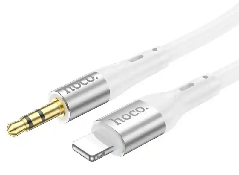 hoco auxiliar UPA22 Cable de conversión de audio de 3,5 mm macho a Lightning macho, trenza de silicona, conectores de aleación de aluminio, 1 m.Características:1. Longitud: 1m. Peso: 24g.2. Material: silicona ecológica + aleación de aluminio.3. Núcleo: núcleo de cobre libre de oxígeno de tres núcleos, calibre 0D3.8, 10/0.1*3C.4. Conector: para Lightning macho a macho de 3,5 mm.