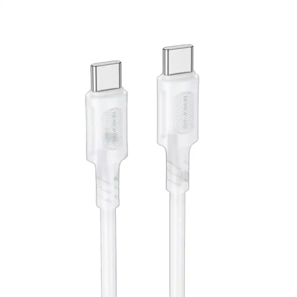Cable Borofone BX111 con conexión USB-C a USB-C en color blanco, ideal para cargar y transferir datos en smartphones, tablets y notebooks compatibles. Diseño resistente y práctico para el uso diario en casa, oficina o viajes. 🔌📱💻