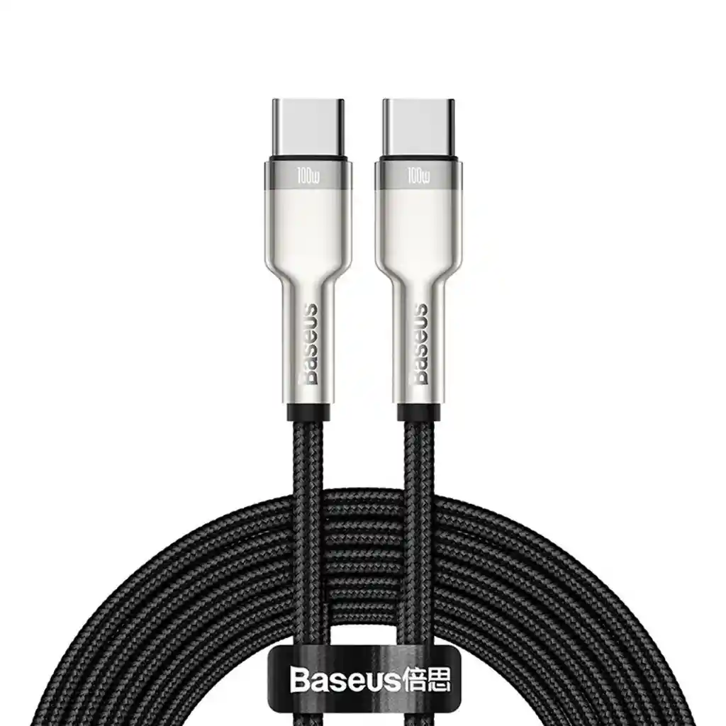 Es un cable de datos USB C a USB C con opción de carga rápida y potencia de hasta 20v 100w. Destacado por su calidad superior gran durabilidad y acabado elegante. Su largo es de 2 mts y está recubierto en nylon con terminaciones metálicas de aleación de Zinc. Compatible con celulares de alta gama Tablets y notebooks de última generación.