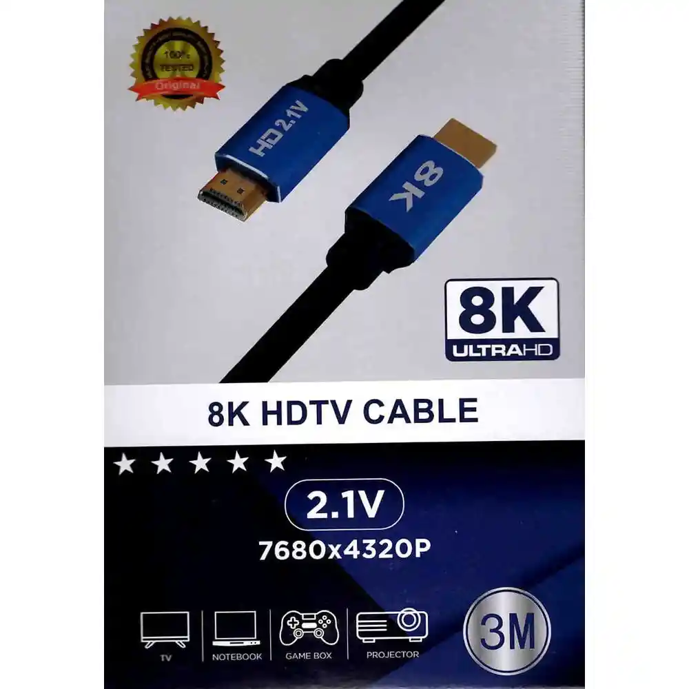 Cable HDMI de 3 metros de alta velocidad con resolución máxima 8K de versión 2.1. Ideal para consolas de videojuegos reproductores multimedia 4K proyectores de imagen y computadores Gamer con tazas de refresco de hasta 120Hz.