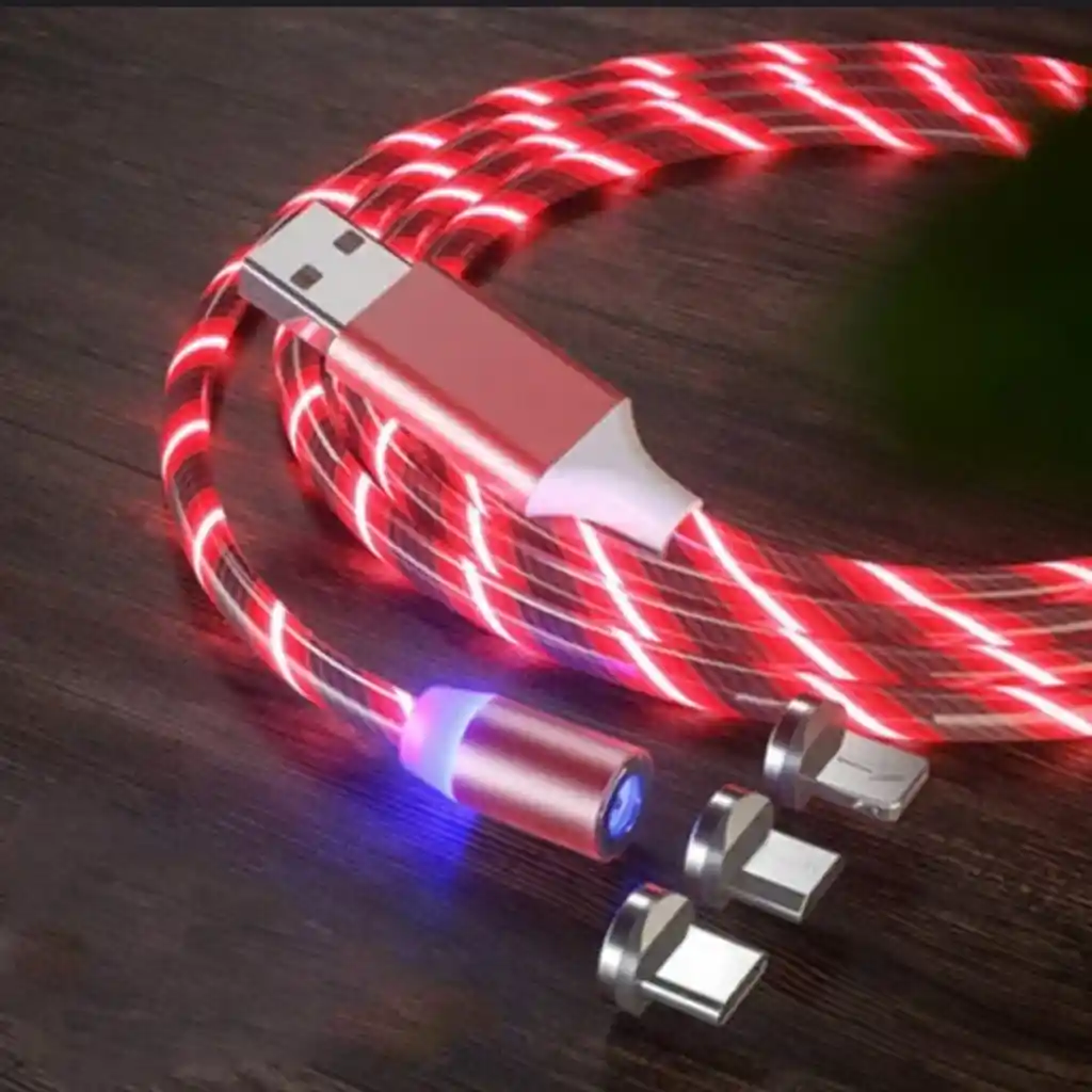 Cable USB Luminoso con Conector Magnético de 2 metros. Simplifica el cargar tu celular, audífonos o cualquier otro dispositivo con entrada Micro USB, Tipo C o Lightening (IPhone). – Tu compra incluye un 1 cable y 3 conectores. Tipo Micro USB, Tipo C o Lightening (IPhone) Usa el plug como protector de polvo para tu centro de carga, ya no es necesario que desconectes y conectes cada que necesites cargar, deja conectado el plug en tu dispositivo y cuando necesite carga solo acércale al cable magnético.