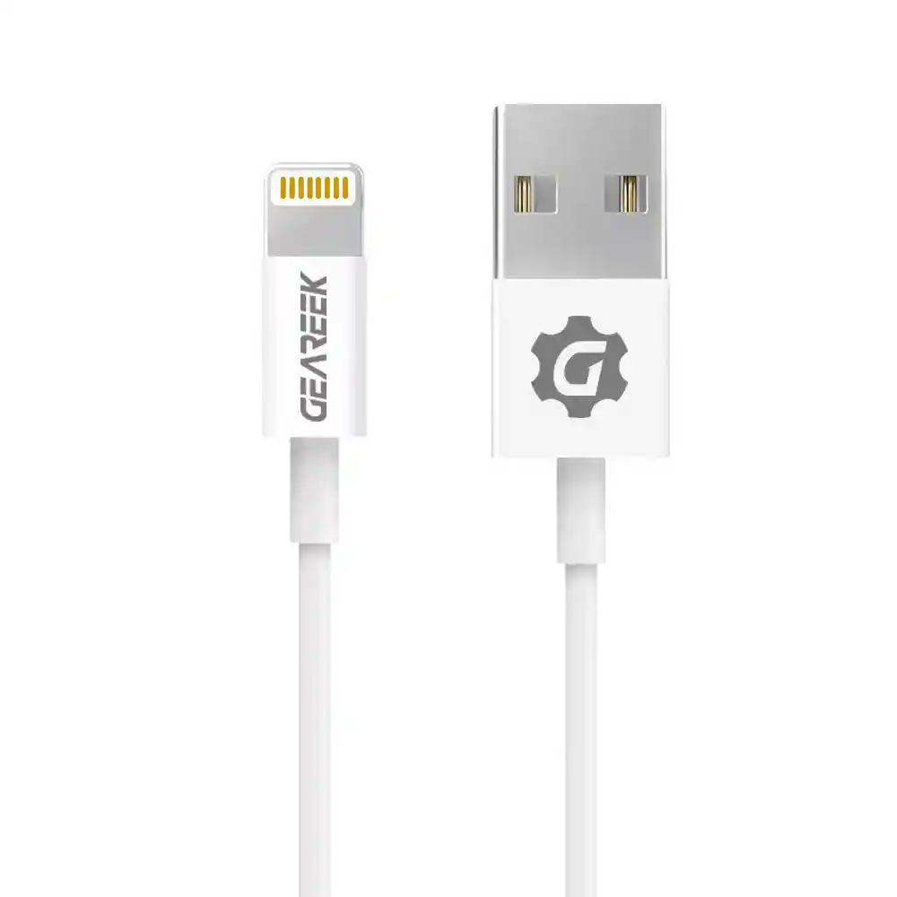 Cable Lightning de carga y datos para iPhone y iPad. Longitud de 1 metro. Cuenta con la certificación MFi con la que nunca te tendrás que preocupar de que no se reconozca el cable sin importar si actualizas o cambias tu dispositivo. Es ultra duradero probado para resistir más de 10.000 pliegues sin romperse lo que lo hace más resistente incluso que los cables originales. Tanto el cable como los terminales poseen un núcleo de aluminio que lo hacen resistente a las condiciones de uso más extremas. Es por esto que tiene 12 meses de garantía. Además gracias a sus conductores de cobre libres de oxígeno brindan una transferencia de carga y datos más rápida.