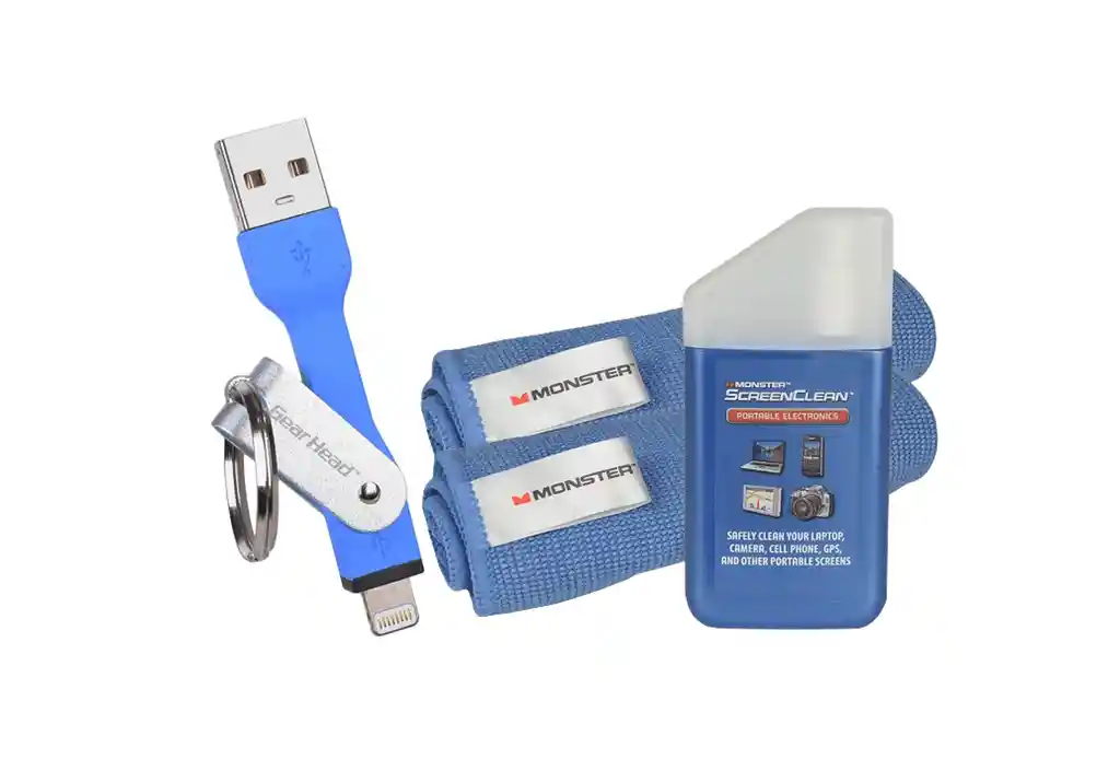 Descripción cable: Compatible con dispositivos Apple Compacto y versátil Cable de carga USB, sincronización y transferencia de datos Especificaciones: Marca: Gear Head Material: silicon flexible Certificación Apple MFi tipo llavero Descripción Kit limpiador: Solución sin alcohol y sin amoníaco elimina de forma segura las bacterias, el polvo, la suciedad y las huellas dactilares del smartphone, pantallas de Tablet (ipad) y dispositivos electrónicos portátiles. • Botella pulverizadora de bomba • Solución sin alcohol y sin amoníaco • El polímero especial ayuda a proteger las superficies sin goteos, rayas ni manchas. • Incluye dos (2) toallas de microfibra Monster Especificaciones: La pantalla de un smartphone puede tener hasta 30 veces más cantidad de bacterias que la tapa de un inodoro, según un estudio realizado por la Universidad de Barcelona¨. Los polímeros patentados protegen de agentes microbianos, huellas dactilares, polvo y suciedad. botella de (45ml) con spray de pulverización. Protege contra adhesión microbiana. Extiende en tiempo de limpieza de tus pantallas. Incluye dos (2) toallas de microfibra antibacteriales. Especial para llevar en tu bolso o mochila.