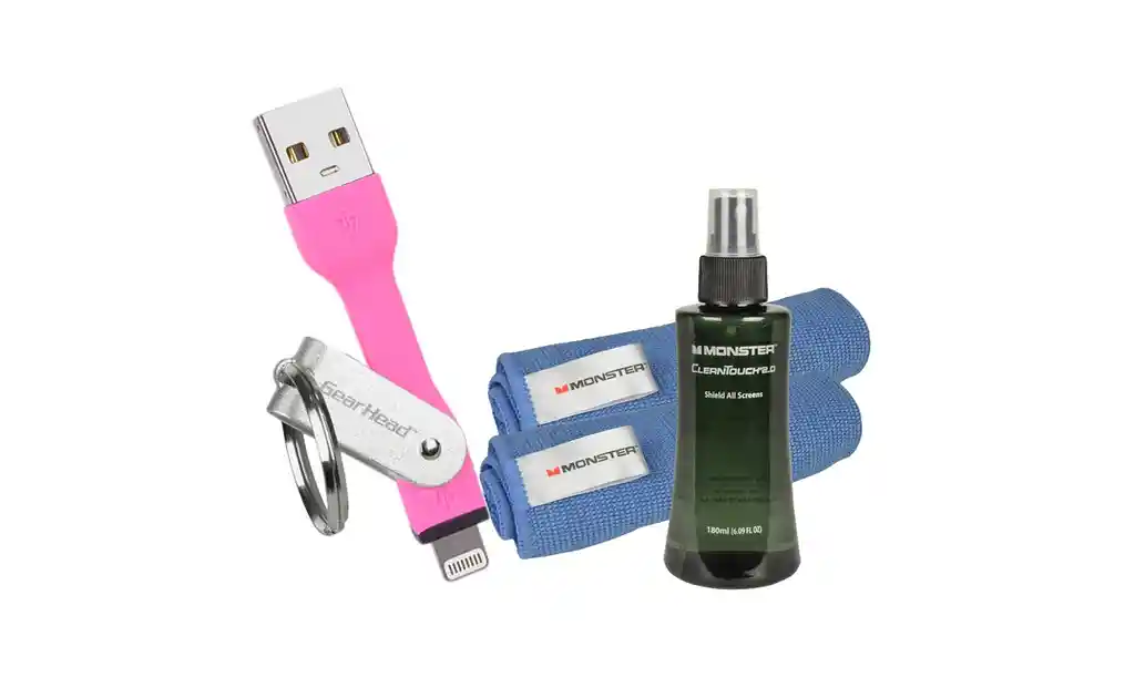 Descripción cable: Compatible con dispositivos Apple Compacto y versátil Cable de carga USB, sincronización y transferencia de datos Especificaciones: Marca: Gear Head Material: silicon flexible Certificación Apple MFi tipo llavero Descripción Kit limpiador: Solución sin alcohol y sin amoníaco elimina de forma segura las bacterias, el polvo, la suciedad y las huellas dactilares del smartphone, pantallas de Tablet (ipad) y dispositivos electrónicos portátiles. • Botella pulverizadora de bomba • Solución sin alcohol y sin amoníaco • El polímero especial ayuda a proteger las superficies sin goteos, rayas ni manchas. • Incluye dos (2) toallas de microfibra Monster
