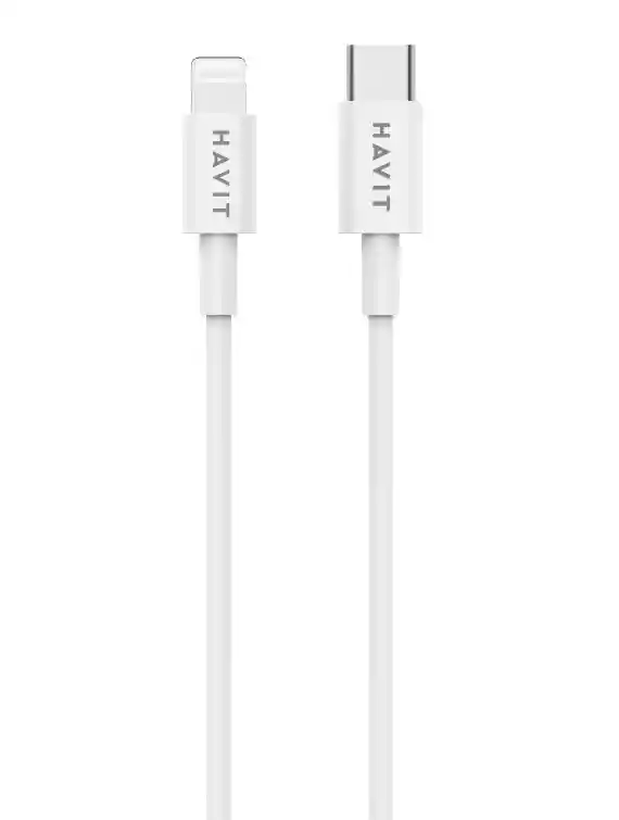 CABLE TIPO C A LIGHTNING HAVIT 1.2 METROS 2.4A RH13 • Cable Type C TO Lightning. • Longitud: 1.2 M. • DE: 3.8mm/(45/0.10+250D)*2C+(10/0.10+250D)*3C. • Corriente: 2.4 A (PD20W). • Material: ABS +TPE. • Función: Carga y transmisión de datos.
