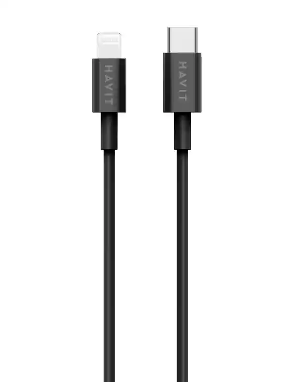CABLE TIPO C A LIGHTNING HAVIT 1.2 METROS 2.4A RH13 • Cable Type C TO Lightning. • Longitud: 1.2 M. • DE: 3.8mm/(45/0.10+250D)*2C+(10/0.10+250D)*3C. • Corriente: 2.4 A (PD20W). • Material: ABS +TPE. • Función: Carga y transmisión de datos.