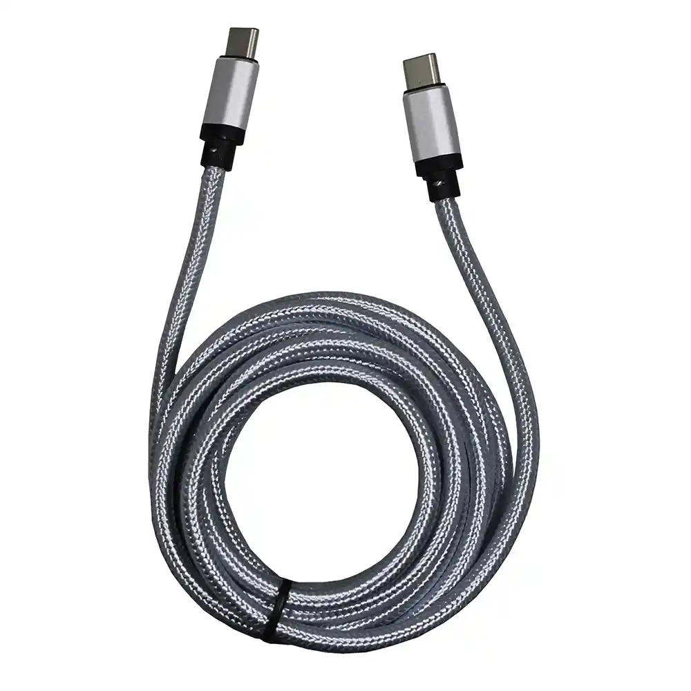 Cable Tipo-C A Tipo-C-5V. 2 metros. Cable Bidireccional. El cable Type-C de alta calidad adjunto presenta un conector Type-c de próxima generación con un nuevo diseño que es completamente reversible. Esto le permite conectarse sin fallar, independientemente de cómo sostenga e inserte el cable. Soporta transferencia de datos de hasta 10GB/s (x10). Conductores de cobre puro para una menor pérdida y una conductividad máxima. Construcción de par trenzado para asegurar la transferencia de datos a alta velocidad y libre de errores. Cable sellado para reducir las interferencias EMI/RFI