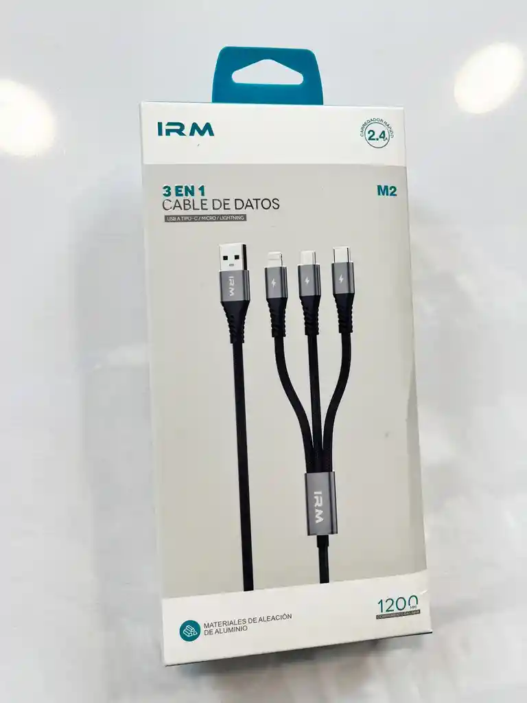 Cable Triple 2 Metros Tipo C - Micro Usb 3 En 1 Ligh