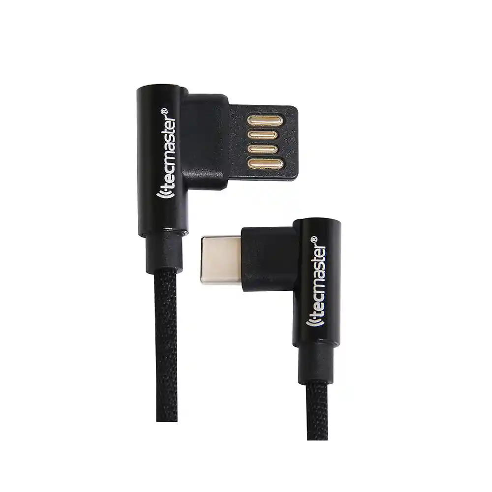Cable USB reforzado textil a Tipo-C reversible 1 mtr trenzado negro y resistente. Cable Negro textil reversible de USB a Tipo-C de 1 mt. Conectores diseñados en ángulo de 90° para mayor comodidad. Cable textil reforzado trenzado de alta calidad. Carga rápida de hasta 2.4 A. Conector USB reversible. Largo 1 metro. Flexible y muy resistente. Cable USB a conector Micro-USB.