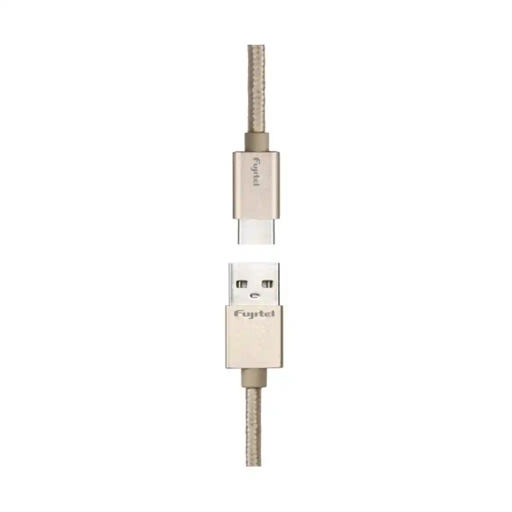 Cable trenzado de metal USB a Tipo C. Carga más rápida de 2.1A. Fibra de nylon tejida. Transmisión más rápida. Cable USB 2.0. Tecnología sofisticada. Largo del Cable: 100cm Conector de entrada: USB Tipo C Conector de salida: USB Color: Dorado Modelo: USBTYPEC030 Marca: Fujitel SKU: 6097