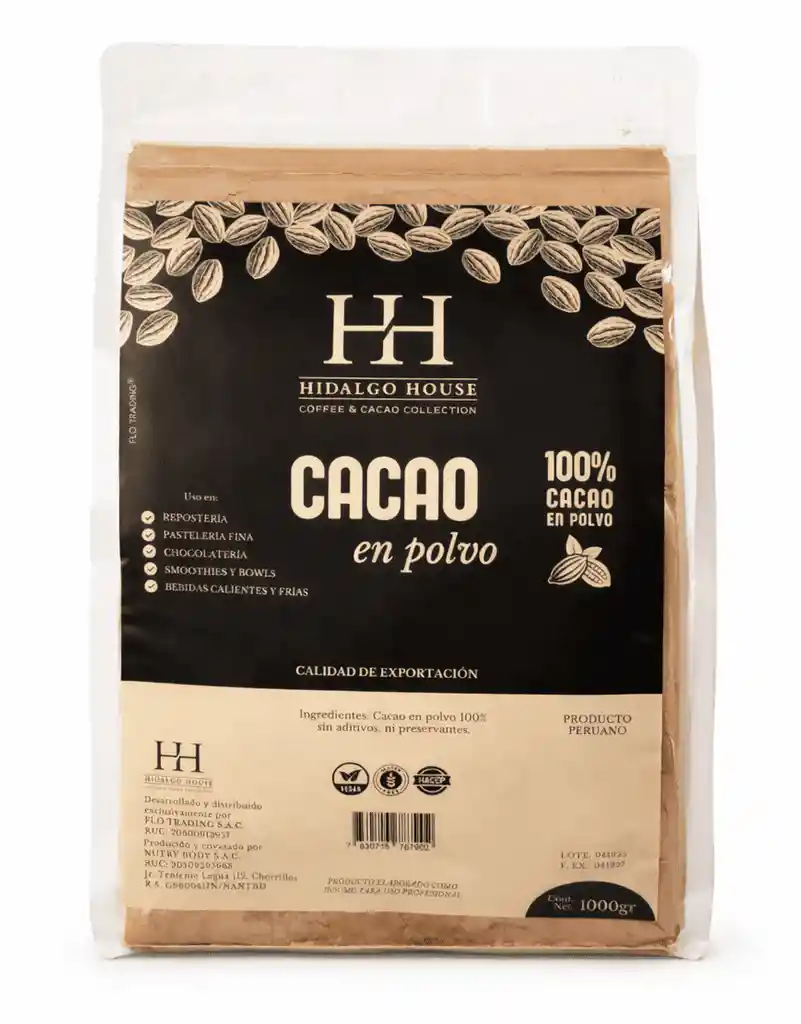 Auténtico cacao en polvo 100% de origen peruano, puro y sin aditivos. Elaborado a partir de granos seleccionados, ofrece un sabor intenso, profundo y natural. Sin azúcar añadida, sin conservantes y sin mezclas. Ideal para: • Bebidas de chocolate • Repostería y postres • Preparaciones saludables Formato 1 kg, perfecto para uso diario en casa o cafeterías.