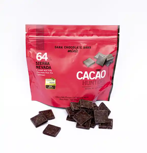 Notas: Frutos Rojos Cítricos Canela y Panela. Ingredientes: Cacao Azúcar Manteca de Cacao y Lecitina de Soya. Chocolate Awards World 2016 Gold. Bolsa