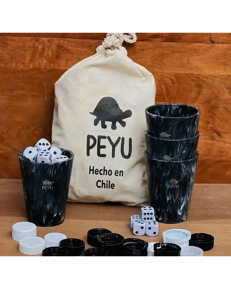 PACK 4 CACHOS 100% reciclados, saco de algodón orgánico y 20 dados. JUEGA DONDE QUIERAS.
