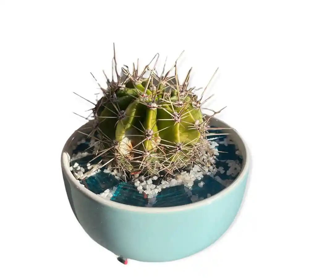 Cactus macetero celeste piedras blancas mosaico calipso ideal para interiores o exteriores 7,6 x 12,7 cm Modelo único por unidad (1 unidad)
