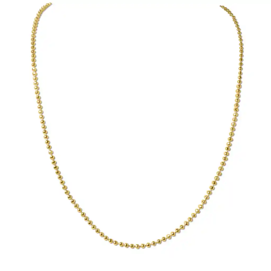 Hermosa y delicada cadena modelo bolitas Enchapada en Oro 18K. Perfecta para combinar con un hermoso colgante. Tiene una aleación de metales, libre de níquel. El material es hipoalergénico. Calidad garantizada. Medida: Largo es 45cm. Tamaño bolitas 1mm. Peso 2,4 gr.