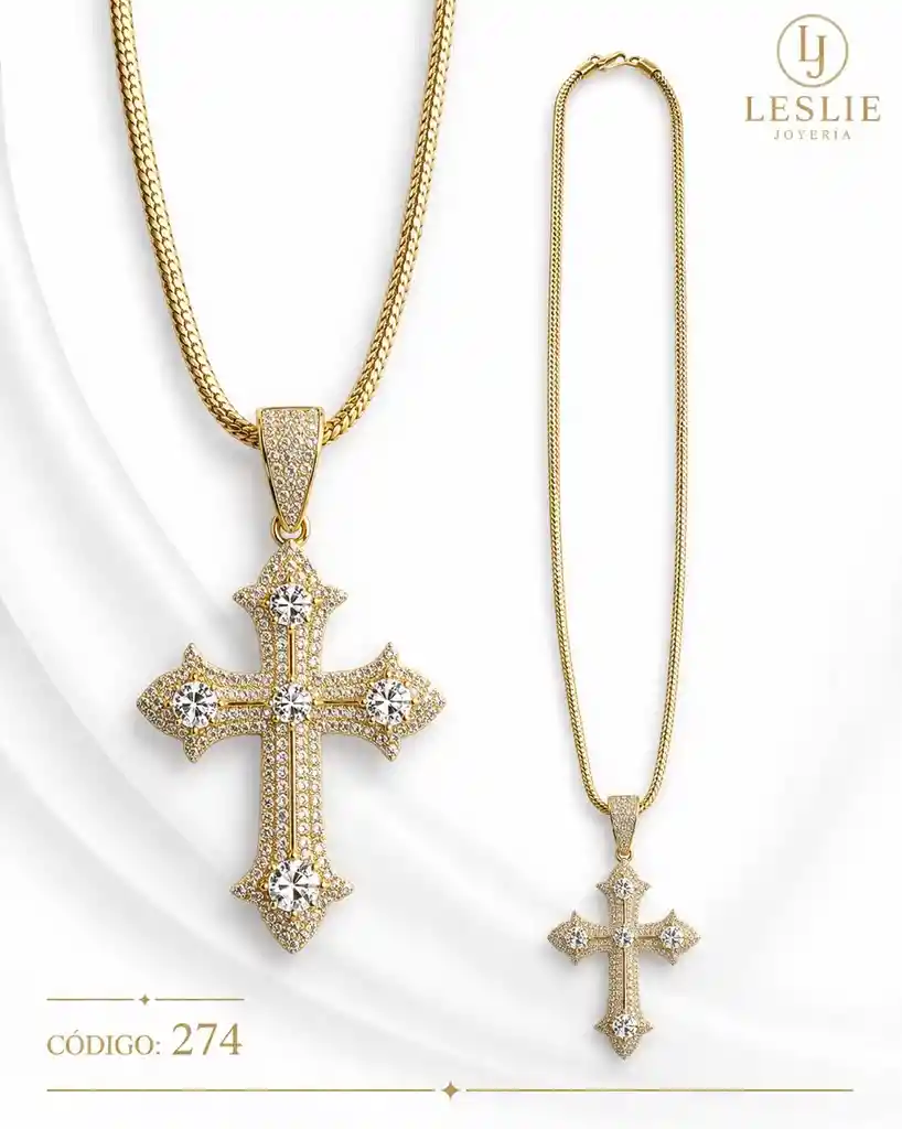 ✨ Cadena Cruz con Cristales Premium ✨ Imponente cadena con dije de cruz cubierto de microcristales que aportan un brillo elegante y sofisticado, destacando detalles con cristales centrales que realzan aún más su diseño. Su cadena gruesa tipo espiga le da un estilo moderno, firme y muy llamativo. 📏 Largo del collar: 60 cm 📏 Tamaño del dije: 5 cm 💎 Joya laminada en oro de 18K, libre de níquel e hipoalergénica, ideal para pieles sensibles. 💧 Alta durabilidad y resistente al agua, perfecta para uso diario. 💖 Un diseño fuerte y elegante, ideal para quienes buscan una pieza protagonista con estilo y significado.