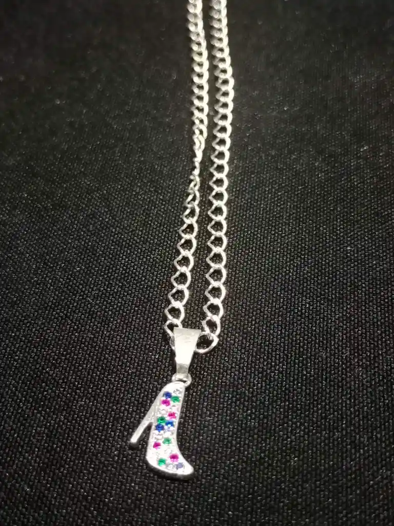 Collar de cadena de plata con delicado y brillante dije con cristales de colores