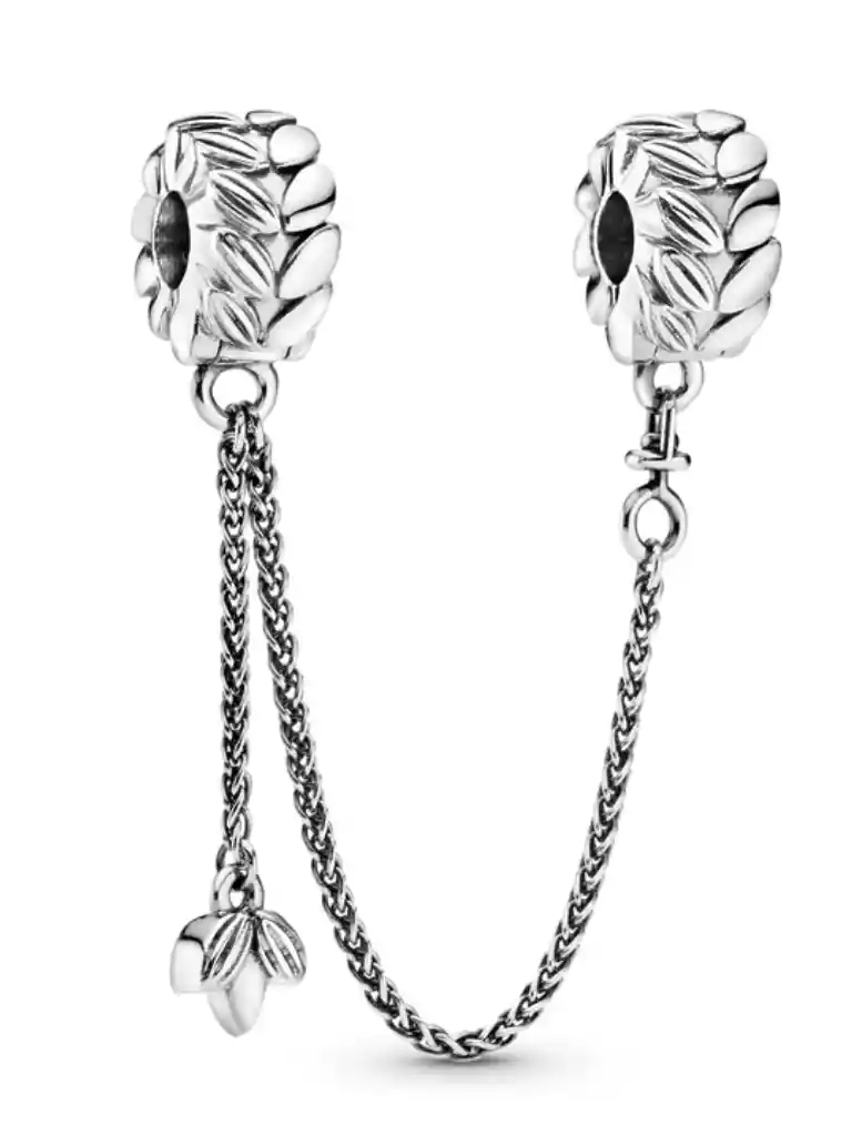 El charm está hecho de Plata esterlina 925 con su respectivo sello Es totalmente compatible con pulseras Pandora y cualquieras otras marcas europeas. Nuestras cadenas de seguridad, aseguran que tus charms permanezcan en el brazalete de tu elección. Los charms sujetadores del estilo están detallados con espigas de trigo en clara alusión a la naturaleza, un símbolo de la prosperidad. La cadena está provista de extremos giratorios para evitar que se enrede y está decorada con pequeños granos de trigo. Para usarla, simplemente enróscala en un lado de tu brazalete antes de agregar los charms, cuando hayas terminado de colocarlos, enrosca el otro extremo de la cadena de seguridad.