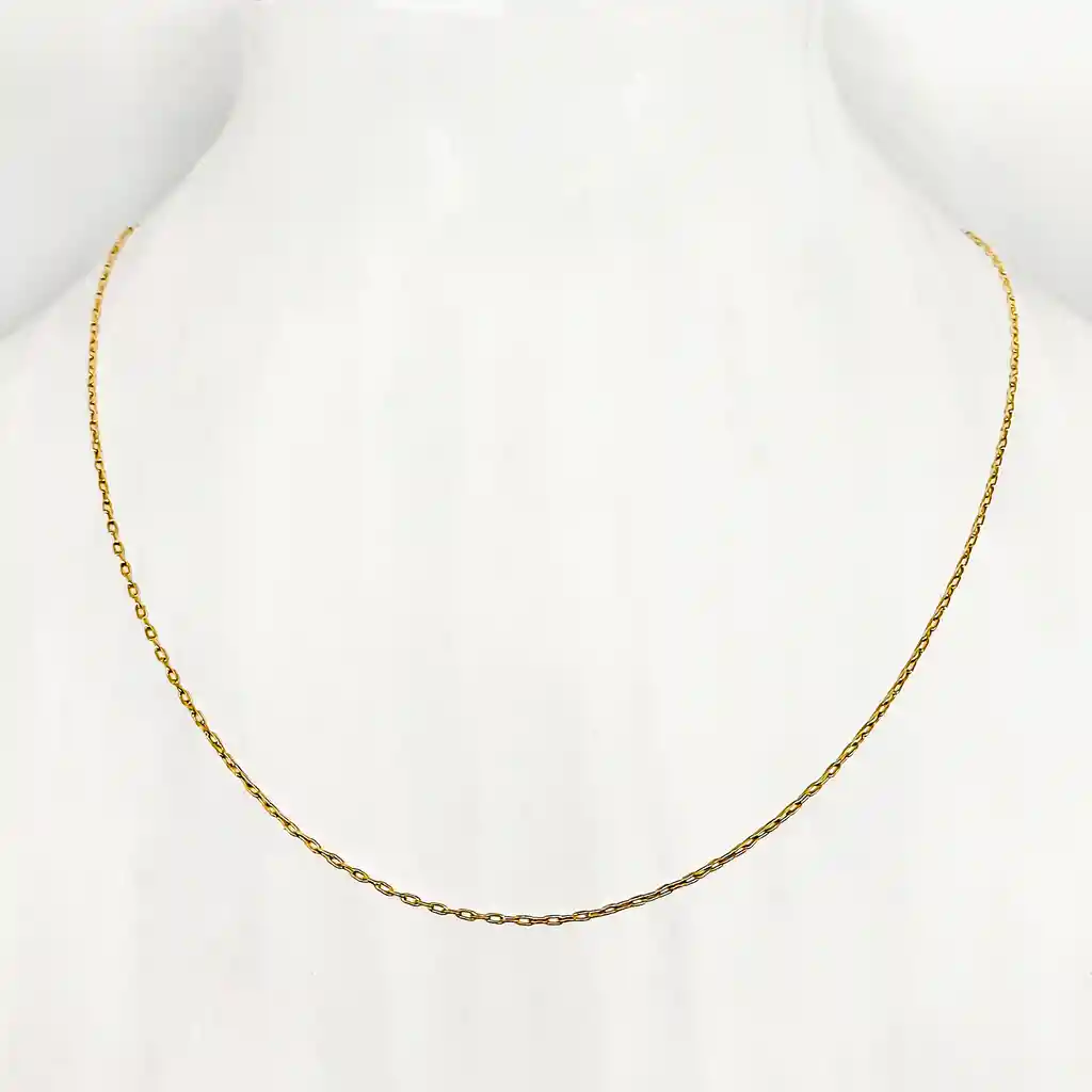 Hermosa, delicada y elegante Cadena Eslabón Extrafino 45cm Enchapado Oro 18K. Fabricada en Bronce y Enchapada en Oro 18K. El material es de calidad garantizada, hipoalergénico y no posee níquel. Medidas: Largo Total 45cm.