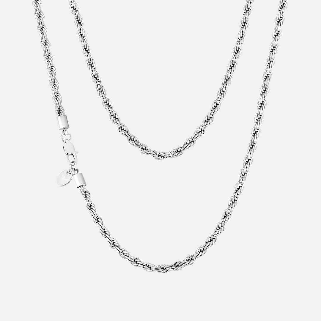La Cadena Rope de Saint Venik con su trenzado inigualable genera un aspecto que no es fácil de olvidar. Las miradas te seguirán y también cumplidos a cualquier lado que vayas.Características✓ Acero inoxidable 316L✓ Rodio✓ Resistente al agua, sudor y calor✓ Hipoalergénico (sin piel verde)Grosor: 3mm.Tamaños: 50cm/55cm/60cm.