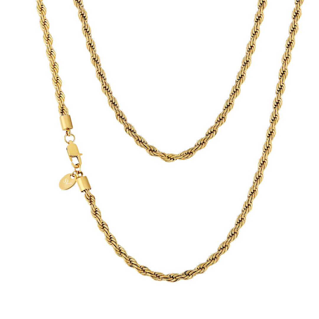La Cadena Rope Oro de Saint Venik con su trenzado inigualable genera un aspecto que no es fácil de olvidar. Las miradas te seguirán y también cumplidos a cualquier lado que vayas. Características ✓ Enchapado Oro 18k 2.5 micras ✓ Acero inoxidable 316L ✓ Rodio ✓ Resistente al agua, sudor y calor ✓ Hipoalergénico (sin piel verde) Grosor: 3mm. Tamaños: 50cm/55cm/60cm. El cumplido preferido que han recibido nuestros clientes → "Qué linda se te ve...Me encanta que uses Accesorios"