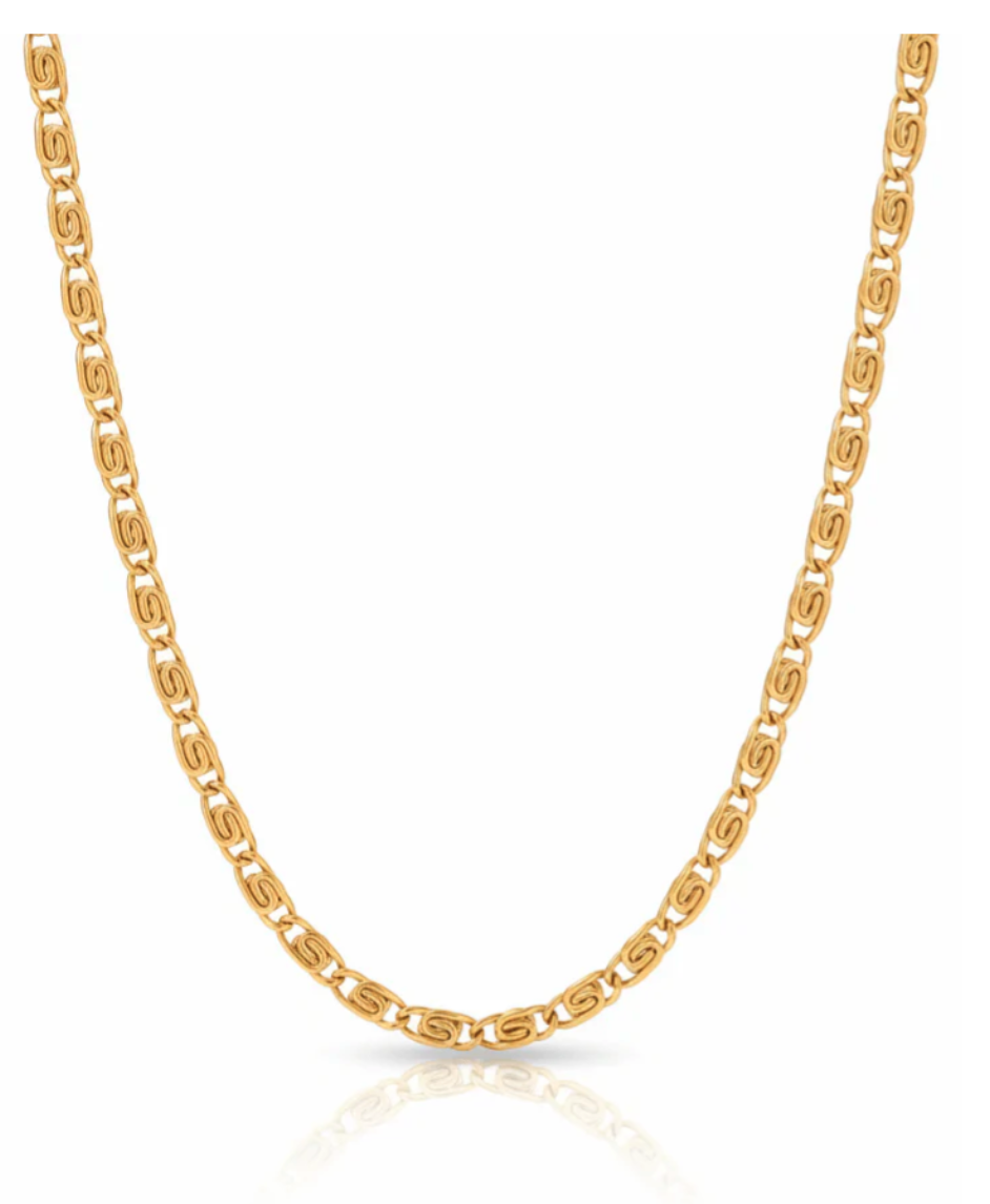 <p class="font-claude-response-body break-words whitespace-normal leading-[1.7]">La Cadena Sunset de Saint Venik trae un diseño de eslabones únicos que capturan la luz desde cualquier ángulo. Un patrón distintivo que se ve tan bien con una polera básica como con una camisa. Para el hombre que busca algo diferente sin perder la elegancia.</p><p class="font-claude-response-body break-words whitespace-normal leading-[1.7]"><strong>Características:</strong></p><p class="font-claude-response-body break-words whitespace-normal leading-[1.7]"><strong>✓ Acero Inoxidable 316L</strong></p><p class="font-claude-response-body break-words whitespace-normal leading-[1.7]"><strong>✓ Enchapado Oro 18k 2.5 micras</strong></p><p class="font-claude-response-body break-words whitespace-normal leading-[1.7]"><strong>✓ Resistente al agua, sudor y calor </strong></p><p class="font-claude-response-body break-words whitespace-normal leading-[1.7]"><strong>✓ Hipoalergénico (sin piel verde)</strong></p><p class="font-claude-response-body break-words whitespace-normal leading-[1.7]"><strong>Grosor cadena:</strong> 4mm</p><p class="font-claude-response-body break-words whitespace-normal leading-[1.7]"><strong>Largo cadena:</strong> 50cm </p><p class="font-claude-response-body break-words whitespace-normal leading-[1.7]"><em>El cumplido preferido que han recibido nuestros clientes → "Qué linda se te ve...Me encanta que uses Accesorios"</em></p>