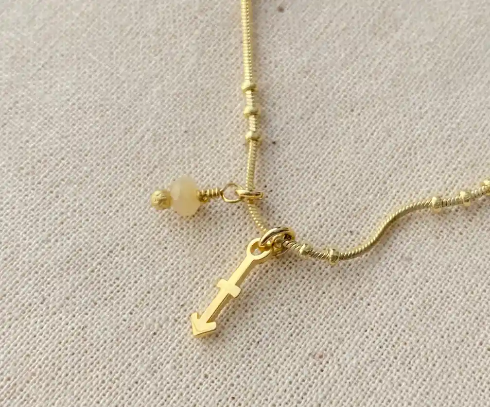 ¡El regalo perfecto para tu amiga Sagitario! Material: Enchape de oro 18k, sobre bronce. Hipoalergénica y libre de níquel, y piedra cuarzo citrino. Medida: Largo 40 cm con extensor hasta 45 cm.