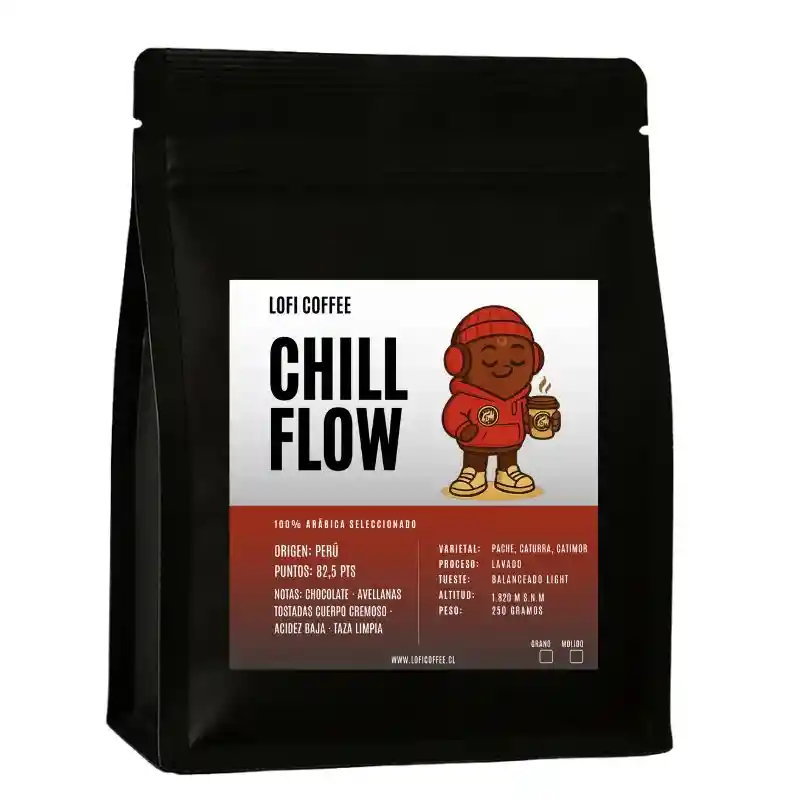 Café Chill Flow – Perú 100% Arábica | 82,5 pts | Lavado | Tueste Balanceado Light Un café suave, cremoso y perfecto para quienes buscan una taza relajada y sin acidez marcada. Perfil de sabor Chocolate Avellanas tostadas Cuerpo cremoso Acidez baja y suave Final redondo y muy fácil de tomar Un café cálido, amable y perfecto para el día a día. ¿Para quién es este café? Ideal para personas que: Prefieren café suave, cremoso y sin acidez fuerte Les gustan los sabores clásicos: chocolate, nueces, tostados suaves Quieren un café fácil de tomar y apto para cualquier hora Se están iniciando en el café de especialidad o buscan un sabor familiar pero de alta calidad Es tu café si te gusta disfrutar una taza tranquila, sin sorpresas agresivas. ¿Cómo recomendar tomarlo? Perfecto solo (negro), porque su cuerpo cremoso lo sostiene muy bien También funciona excelente con un toque de leche o bebida vegetal Muy bueno para tomarlo: en la mañana en la tarde mientras trabajas como café “comfort” diario