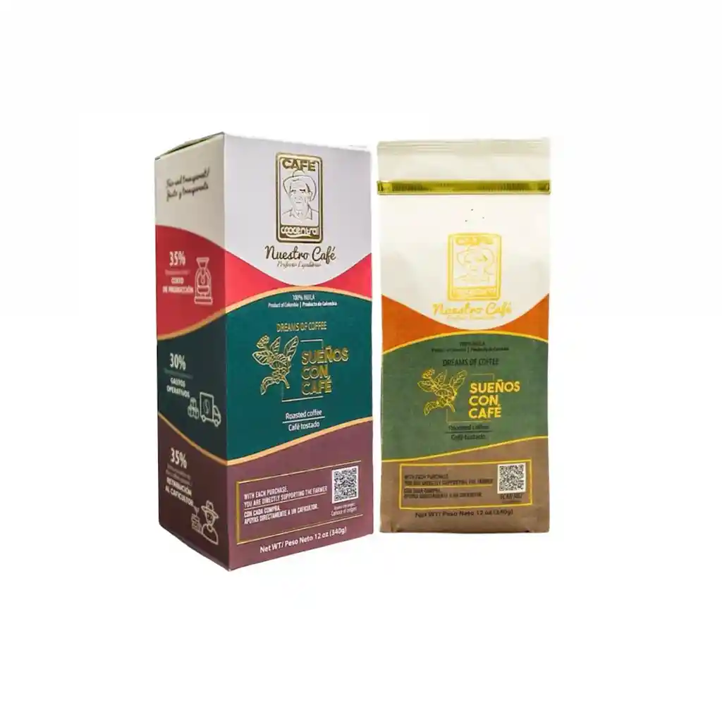 "Café de especialidad, proceso artesanal, con una noble causa de ayudar a los hijos con discapacidad física o mental de nuestros productores. 100% Arabica. Origen: Huila Colombia. Altitud: 1.350 - 1.900 m.s.n.m. Tueste: Medio. Variedad: Caturra, Castillo, Colombia. Aroma Floral, Cuerpo Medio, Acidez Media, Sabor Dulce Miel. SCA: 86"