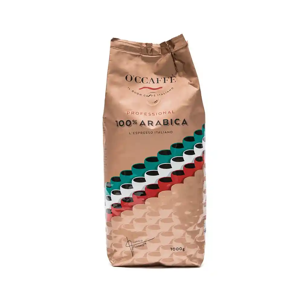 ESPRESSO 100% Arábica O'CCAFFÈ Línea Profesional de Café en grano O'CCAFFÈ NO ES DESCAFEINADO. O'CCAFFÈ 100% Arábica combina perfectamente granos de Arábica de Brasil - Ethiopia - Perú Intensidad 4/7.