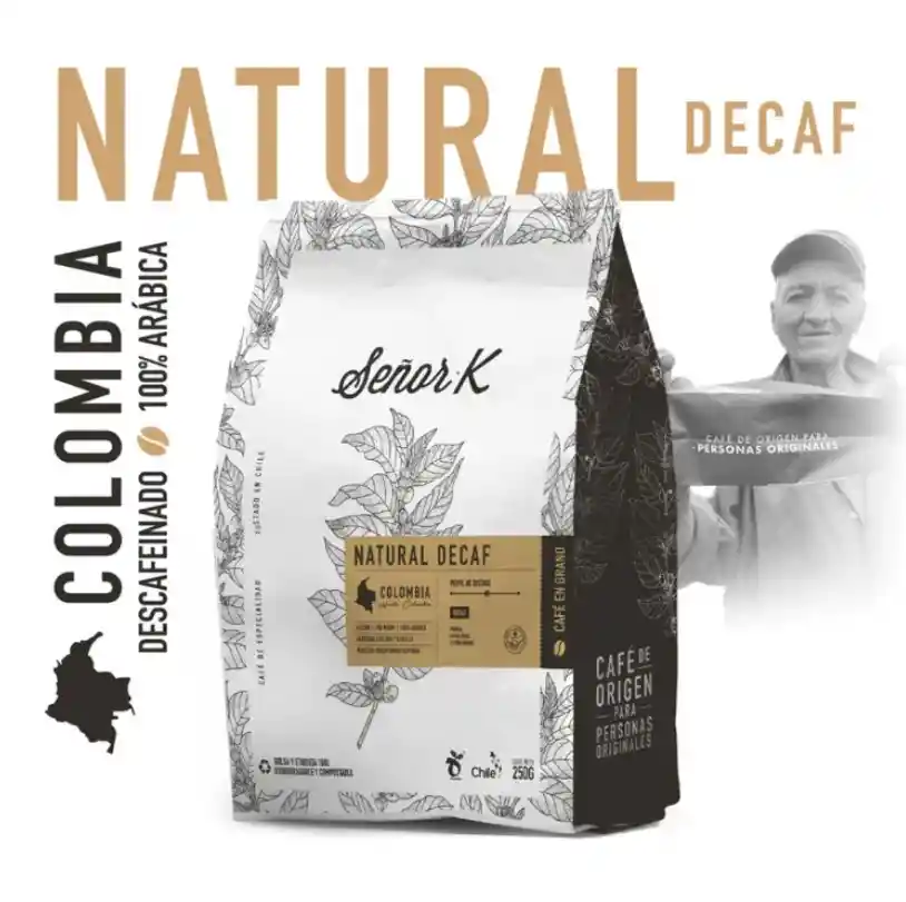 Café proveniente de Tolima, Colombia, con tueste medio, descafeinado naturalmente con caña de azucar, con notas a naranja, caramelo, cuerpo cremoso y aroma dulce, residual limpio y prolongado. Origen: Tolima Variedad: Caurra y castillo ACIDEZ:●●●●○ CUERPO:●●●●● DULZOR:●●●●○ BALANCE:●●●●●
