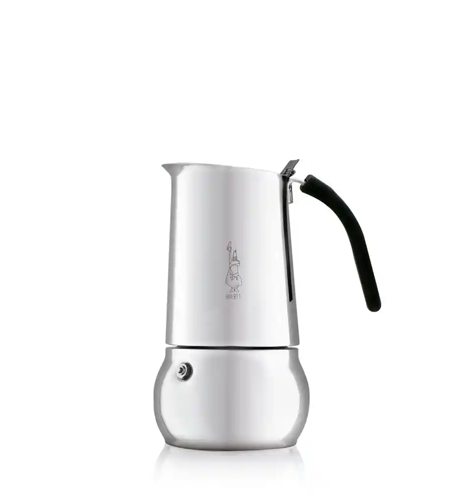 DESCRIPCIÓN Un clásico en el tiempo en un modelo elegante y grandes prestaciones. Alfredo Bialetti fue el inventor de este Clásico en la preparación del Café. Prepara un café intenso y con cuerpo en la cafetera más famosa de todos los tiempos. La cafetera italiana Venus está fabricada en acero inoxidable que le da una gran resistencia gracias al incremento en su espesor. Es una cafetera practica, de forma armoniosa, de estilo y diseño destacado. CARACTERÍSTICAS Líneas armoniosas que enfatizan la pureza del material y la comodidad del asa en silicona. Armonía de líneas y alta calidad de los materiales. Acero pulido. Práctico, resistente. Elaborada en Acero Inoxidable. Práctico, resistente. Inalterable en el tiempo. No se oxida. Un diseño clásico, pero a la vez moderno con terminación de Acero pulido. “Firma” única y original del célebre “Hombrecito de bigotes” de Bialetti. Todas las cafeteras Bialetti miden su tamaño y capacidad en relación a tazas de espresso italiano. Poseen exclusiva válvula de seguridad que es inspeccionable y fácil de limpiar. Patentada por Bialetti. Muy fácil de preparar y lavar. ESPECIFICACIONES Marca: Bialetti Modelo: Kitty 2 tazas. Tamaño: 2 tazas de espresso italiano. Capacidad: 90 ml. Peso 0.430 kg. Color: Acero. Material del cuerpo: Acero Inoxidable 18/10. Material del mango y pomo: De silicona. Dimensiones: 12.5 × 9.2 × 14.5 cm Tipo de cocina / encimera apta para su uso: Gas, Eléctrica, Vitrocerámica y placas de inducción SIN DETECTOR DE TAMAÑO. IMPORTANTE COCINA DE INDUCCIÓN: si la cocina cuenta con tecnología “detección automática” del posicionamiento y tamaño del producto (cafetera), se debe confirmar el diámetro mínimo que permite detección su cocina. Esta información es importante para confirmar si detectará la cafetera. Como ejemplo, si su cocina de inducción detecta ollas o sartenes a partir de “13 cms” en adelante de forma automática, no se puede usar una cafetera que tenga como diámetro de la base “10 cms”. Válvula de seguridad de fácil limpieza. QUÉ VIENE EN LA CAJA/EMPAQUE Cafetera Kitty. Instrucciones de uso.