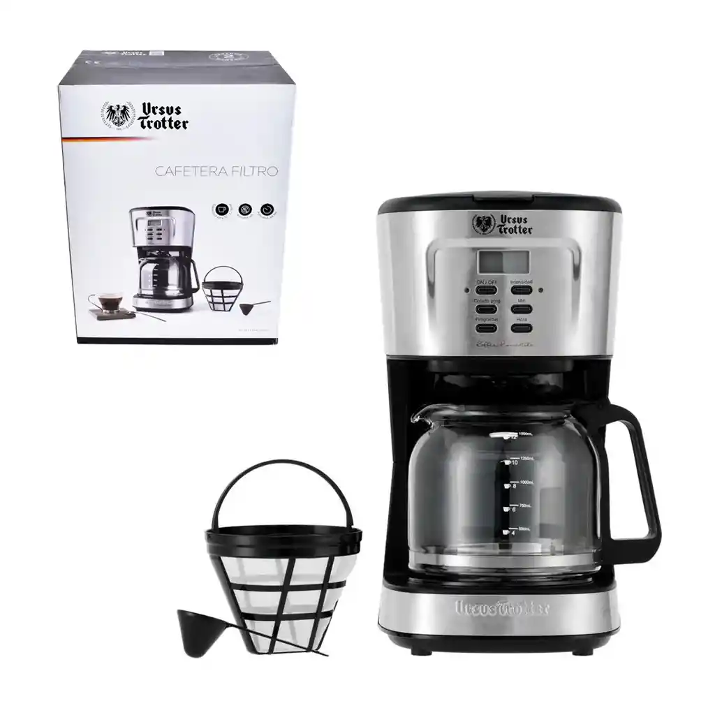 Capacidad para 10-12 tazas, Potencia 850w. Filtro lavable y removible, programación de colado, tiempo , aroma e intensidad, control digital programable con 6 funciones, panel frontal de acero inoxidable que permite múltiples programaciones de colado, tiempo, aroma e intensidad. función auto-apagado, valvula anti-goteo y control digital programable con 6 funciones. Partes y piezas libres de BPA, además de su jarra removible y de fácil limpieza.