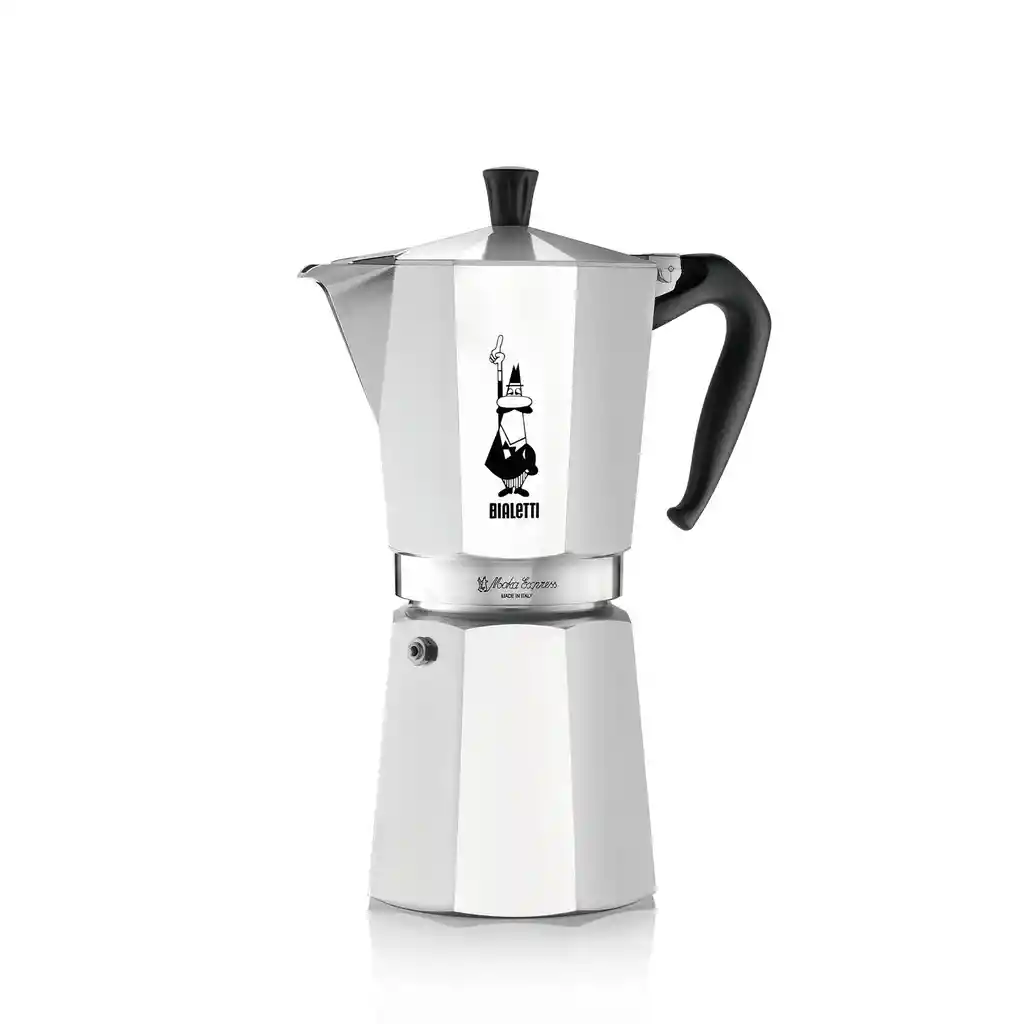 DESCRIPCIÓN La original Moka Express o Cafetera Italiana en su versión para 12 Tazas de Espresso Italiano. En 1933 Alfonso Bialetti creó una de las cafeteras más famosas del mundo, la Moka Express. También conocida como Cafetera Italiana, la Moka se ha convertido en un ícono y referente mundial en la categoría de las cafeteras. Esta cafetera de aluminio, fabricada en italia, tiene una forma distintiva de ocho lados que le permite difundir el calor de manera uniforme para hacer un delicioso espresso en casa. La Moka está pensada para ser utilizada en una cocina de gas, eléctrica o vitrocerámica. Si tienes una cocina de inducción, hay un modelo especial para utilizar en ese tipo de cocinas. La Moka Express de 18 tazas permite elaborar 810 ml de café. Esta medida corresponde a las tazas pequeñas de café espresso italiano que es la medida que usa Bialetti para sus moka: 18 tacitas de 45ml aproximadamente. En este post del blog puede ver ¿Cómo preparar un Café en cafetera Moka? CARACTERÍSTICAS Su cuerpo de aluminio es un excelente conductor del calor y a su vez es liviano. La Moka Bialetti está diseñada con aluminio de alta calidad, resistente al desgaste, por lo que están diseñadas para una larga duración. Todas las cafeteras Bialetti miden su tamaño y capacidad en relación a tazas de espresso italiano. Poseen exclusiva válvula de seguridad que es inspeccionable y fácil de limpiar. Patentada por Bialetti. Muy fácil de preparar y lavar. ESPECIFICACIONES Tamaño: 18 tazas de espresso italiano. Capacidad: 810 ml. Peso 1.3 kg. Color: Aluminio. Material del cuerpo: Aluminio. Material del mango/perilla: Nylon. Diámetro de la base: 11,6 cms. Altura: 24,5 cms. Tipo de cocina apta para su uso: Gas, Eléctrica, Vitrocerámica. No apto para uso en placas de inducción. Válvula de seguridad de fácil limpieza. No apto para lavavajillas. QUÉ VIENE EN LA CAJA/EMPAQUE Cafetera Moka. Instrucciones de uso.