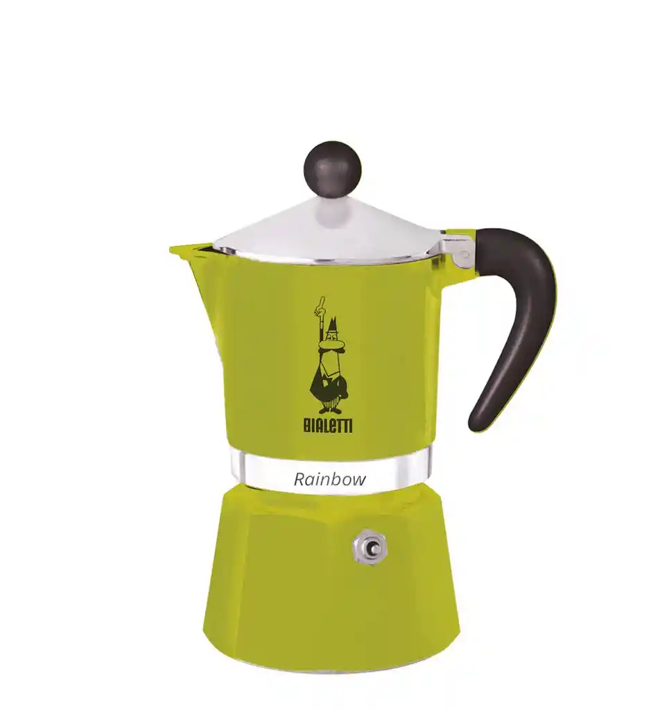 <h2>DESCRIPCIÓN</h2> <p>RAINBOW ES LA COLORIDA CAFETERA DE BIALETTI PARA EMPEZAR EL DÍA DE BUEN HUMOR.<br /> Como su nombre indica, está disponible en diferentes colores, como el arco iris. Como todos los productos Bialetti, lleva el icónico hombrecito con bigote, diseñado en 1953 por el artista italiano Paul Campani y que se ha convertido en un icono del café italiano en todo el mundo. Garantiza alta calidad gracias a la exclusiva válvula de seguridad patentada que puede inspeccionarse y limpiarse fácilmente. Es apta para su uso en cocinas de gas, eléctricas y vitrocerámicas. Rainbow, al igual que todas las cafeteras Bialetti, es: Cero residuos (hacer café con la cafetera produce como residuo sólo el café utilizado, 100% compostable), Cero detergente (para limpiar la Rainbow basta con enjuagarla con agua después de su uso) y Larga Duración (las cafeteras Bialetti están diseñadas para durar toda la vida).</p> <p>El tamaño de la Rainbow se mide en tazas, esta Rainbow es de 3 tazas que corresponde a 130 ml de café dispensado.</p> <h3>ALTA CALIDAD</h3> <p>Calidad Bialetti: producto de alta calidad equipado con la exclusiva válvula de seguridad patentada, inspeccionable y fácil de limpiar, y con un cómodo mango ergonómico antiquemaduras para facilitar el agarre del producto.</p> <p> </p> <h2>CARACTERÍSTICAS</h2> <ul> <li>Práctica y versátil: Rainbow es apta para su uso en cocinas de gas, eléctricas y vitrocerámicas.</li> <li>Un colorido diseño clásico, pero a la vez moderno y con la “Firma” única y original del célebre “Hombrecito de bigotes” de Bialetti.</li> <li>Poseen exclusiva válvula de seguridad que es inspeccionable y fácil de limpiar. Patentada por Bialetti.</li> <li>Muy fácil de preparar y lavar.</li> </ul> <h2><br /> ESPECIFICACIONES</h2> <p> </p> <ul> <li>Marca: Bialetti</li> <li>Modelo: Rainbow Verde.</li> <li>Tamaño: 3 tazas de espresso italiano.</li> <li>Capacidad: 130 ml.</li> <li>Peso 0.450 kg.</li> <li>Color: Verde.</li> <li>Material del cuerpo: Aluminio.</li> <li>Material del mango y pomo: De nylon, firmes y sólidos.</li> <li>Dimensiones: 13.3 × 8.2 × 18 cm</li> <li>Tipo de cocina / encimera apta para su uso: Gas, Eléctrica, Vitrocerámica.</li> <li>Válvula de seguridad de fácil limpieza.</li> </ul> <h2><br /> QUÉ VIENE EN LA CAJA/EMPAQUE</h2> <p> </p> <ul> <li>Cafetera Moka.</li> <li>Instrucciones de uso.</li> </ul> <p> </p>