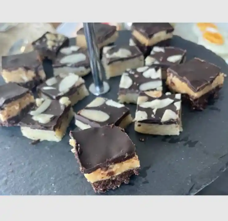 Caja con 4 brownies de naranja, 4 brownies clásicos, 4 calugas y 4 pasteles de mazapán.*sin azúcar *sin harinas *sin lácteos.
