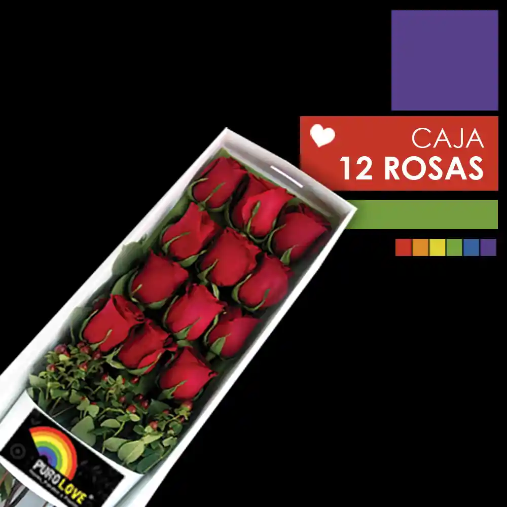 Caja 12 Rosas Ecuatorianas acompañado con follaje y gybson