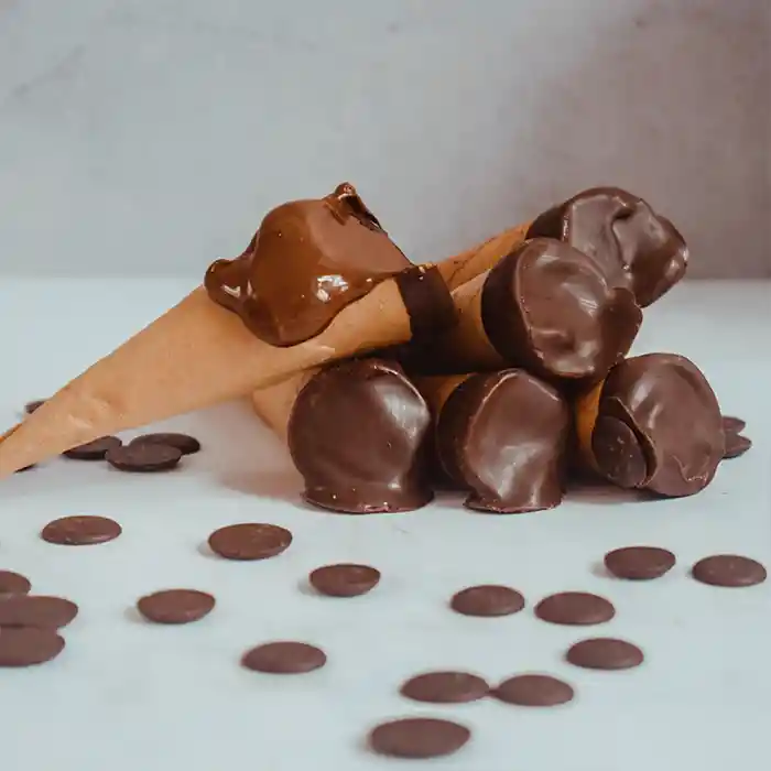 Conos de barquillo con una fina capa de chocolate en su interior, rellenos de Nutella. Para mayor durabilidad recomendamos guardar los barquillos en un lugar fresco (refrigerador), bien sellados. Se pueden congelar.