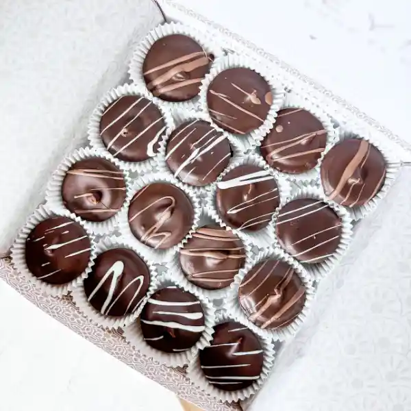 Estas cajitas contienen 16 exquisitos bocaditos rellenos de manjar blanco y manjar blanco Nutella y bañados en chocolate. Son el detalle ideal para hacerles sentir apreciados y consentidos. ¡Nada mejor que un poco de dulzura para alegrarles el día! 🍫✨