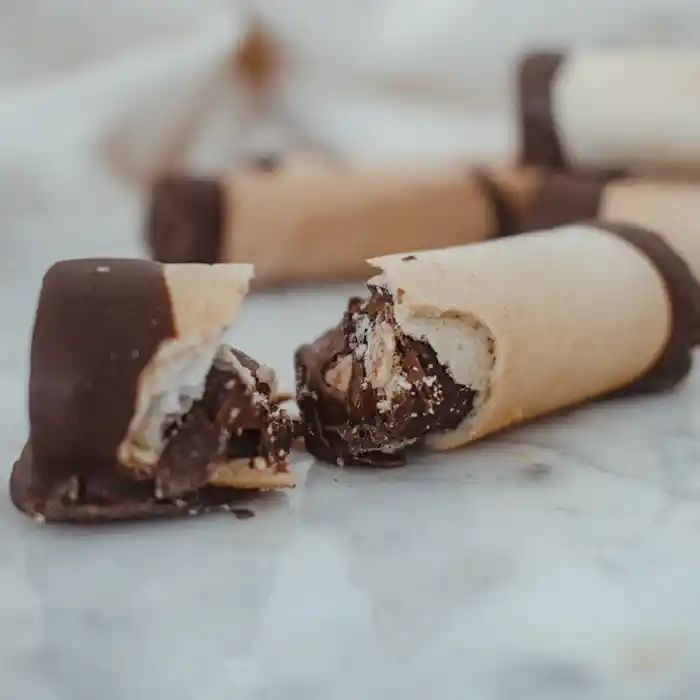 Descripción Cajas de medios barquillos crujiente con una fina capa de chocolate en su interior, relleno con una mezcla de manjar calugoso, nutella o manjar-lúcuma. ¡Elige el que más te guste! Si quieres una caja con más de un relleno te recomendamos comprar 2 cajas por separado y escribir en notas que vayan mezcladas. Cualquier duda nos puedes escribir por instagram! Para mayor durabilidad recomendamos guardar los barquillos en un lugar fresco (refrigerador) y bien sellados. Se pueden congelar.
