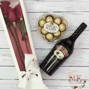 Caja 3 Rosas, Baileys y Bombones Ferrero Rocher 100grs