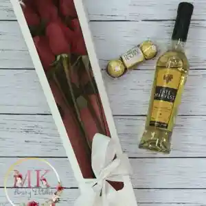 Caja 6 Rosas, Vino Late Harvest y Bombones Ferrero Rocher 37.5grs
