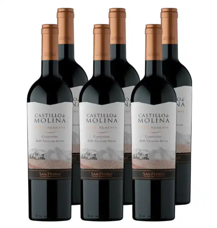 Caja 6 Unidades Castillo De Molina Vino Tinto Carmenere Gran Reserva 750 Cc ; Foto Referencial