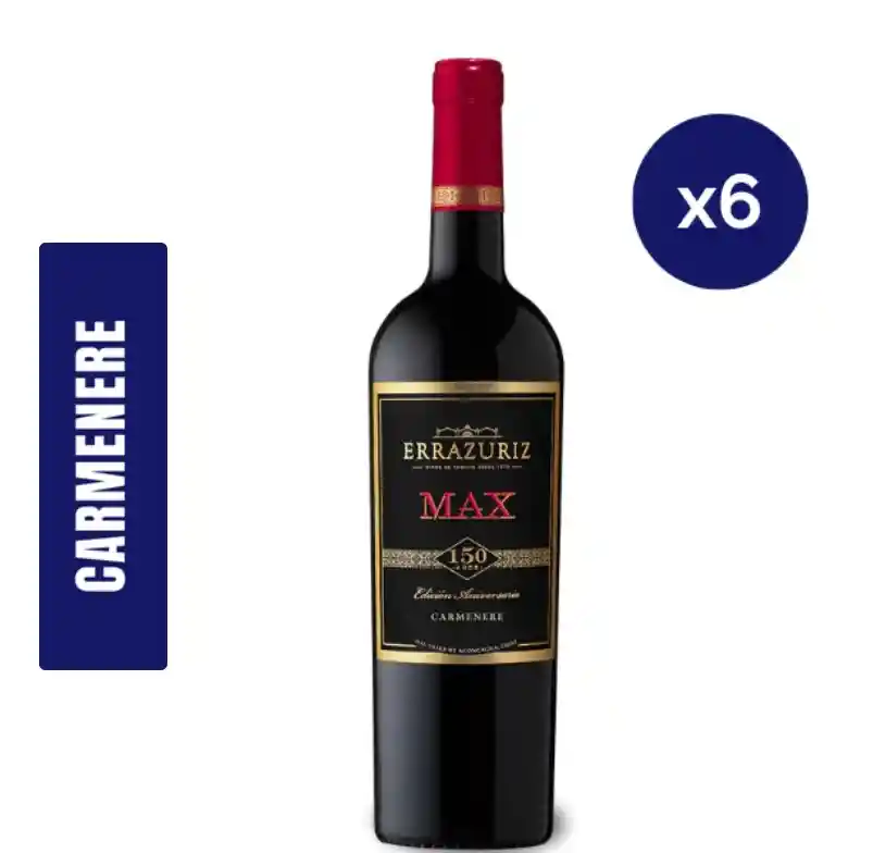 Caja 6 Unidades Max Errazuiz Carmenere ; Foto Referencial