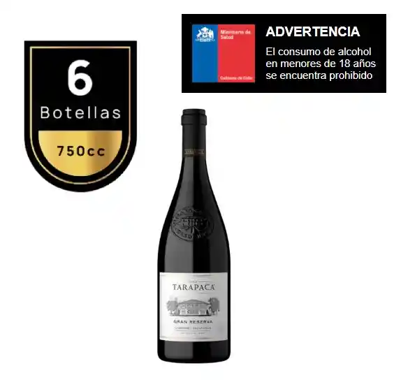 Caja 6 Unidades Tarapaca Gran Reserva Cabernet Sauvignon ; Foto Referencial