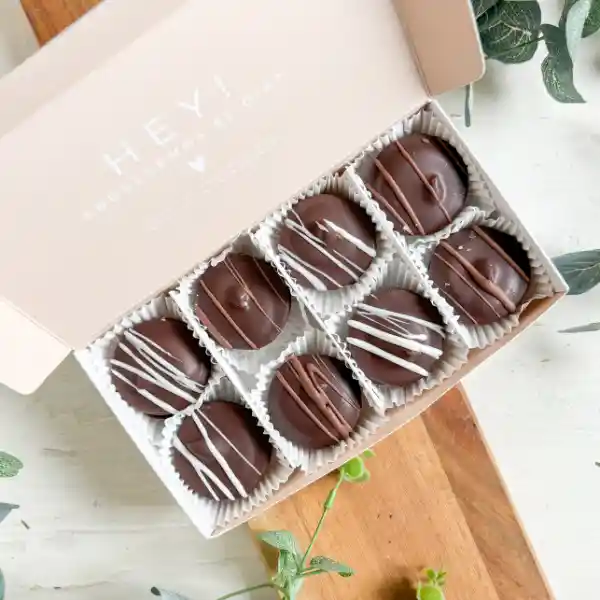 Estas cajitas contienen 8 exquisitos bocaditos rellenos de manjar blanco y manjar blanco Nutella y bañados en chocolate. Son el detalle ideal para hacerles sentir apreciados y consentidos. ¡Nada mejor que un poco de dulzura para alegrarles el día! 🍫✨